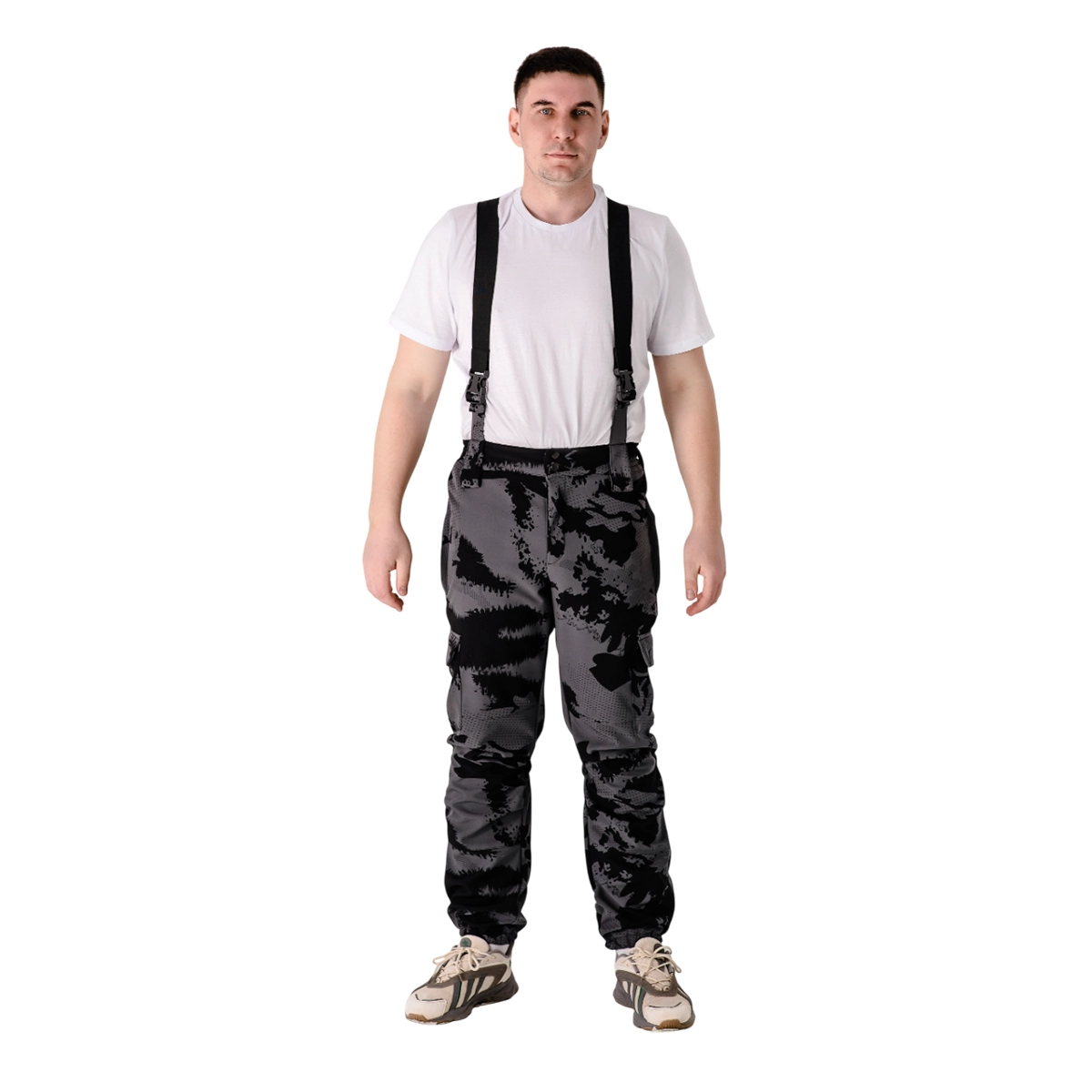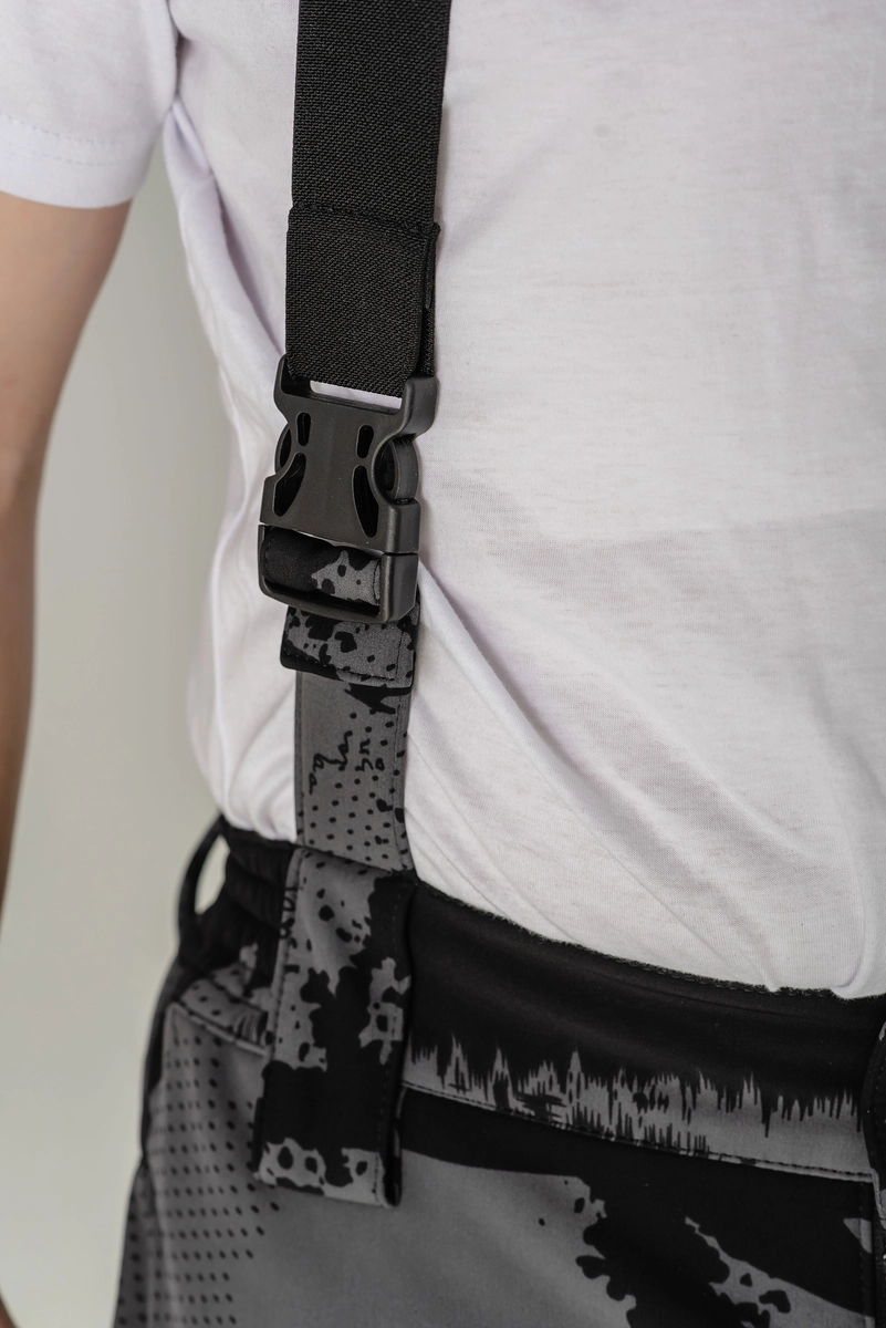 Штаны снабжены двумя карманами для рук и двумя карманами на бедре и по бокам карманы клапан на кнопках.